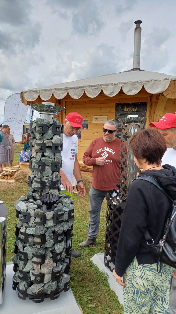 Наша баня стала настоящим центром притяжения: аромат кедрового сруба от наших партнеров Сорокин & Угренинов  привлекал любителей попариться несмотря на дождь и холод. Особое внимание привлекла особенная банная печь TMF Джоконда, которая была представлена впервые.